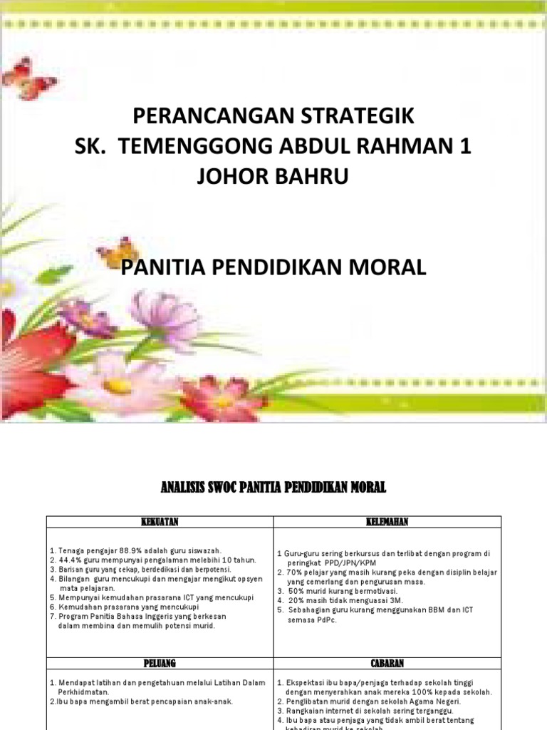 Pelan Strategik Pendidikan Moral / Mendapatkan penceramah luar/ dalaman pemeriksa kertas 1 pendidikan moral spm 3.. Visi:sekolah unggul penjana generasi terbilang misi:membangun potensi individu melalui pendidikan berkualiti matlamat / objektif panitia/ajk jadual spect analisis swoc/swot pelan strategik (satu salinan ps untuk sekolah). Lebih dari 3 tahun cemerlang slideshow 4736004 by giona. Anjakan1menyediakan kesamarataan akses kepada pendidikan berkualiti bertaraf antarabangsa. Untuk mengetahui bagaimana penerapan manajemen strategi pendidikan dalam meningkatkan profesionalitas guru di madrasah aliyah negeri 1 makassar. Perancangan strategik panitia pendidikan muzik 2018 hingga 2020 visi 1.